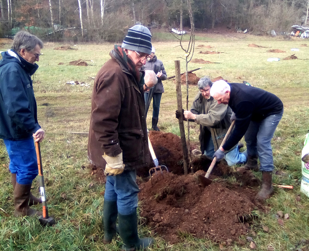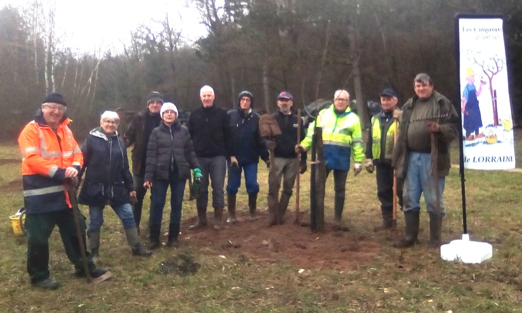 Ce jeudi 30 janvier, une douzaine de personnes ont participé à la plantation de 55 arbres fruitiers soit 9 espèces sur une parcelle communale au fond du site de VAUX à PIERRE LA TREICHE. Les arbres en provenance des Pépinières ROUGIEUX, MENARD, l’AREFE et Croqueurs de pommes ont été bien « pralinés »; tout a été mis en œuvre pour une bonne reprise. Ils ont été répartis sur 5 rangées de 10 à 12 arbres. Nous attendons impatiemment les beaux jours pour voir apparaître les premières feuilles et peut-être quelques fleurs. Ce fut un beau chantier très bien mené et nous souhaitons longue vie à ces jeunes arbres. Merci à tous les bénévoles de la commune impliqués, ainsi que 2 « Croqueurs » Michel et Pierre pour l’organisation du chantier. Il aura fallut la journée complète pour mener à bien l’opération. De la gelée blanche le matin, du soleil à midi et du crachin à partir de 14h!