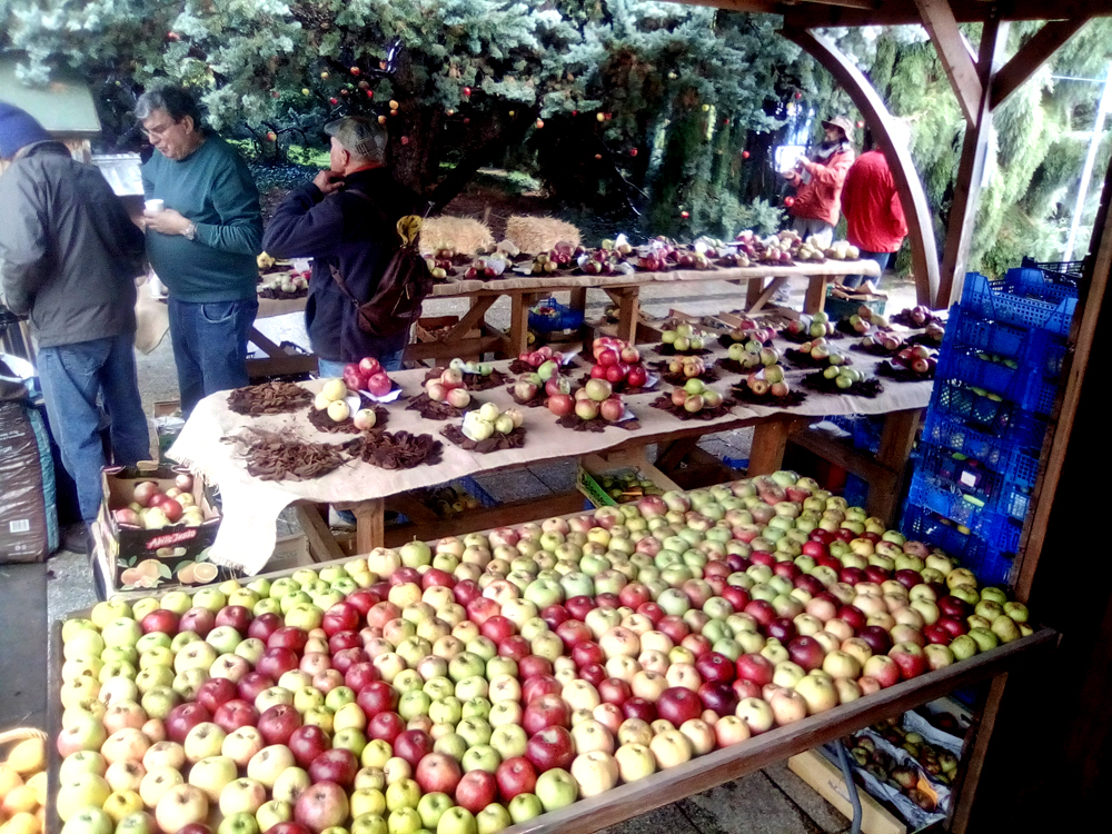 Les stands traditionnels jonchaient le parcours (taille, greffe, création de verger, maladies et ravageurs, librairie, pressage de pommes avec dégustation de jus frais, vente de pommes et de jus de pommes).