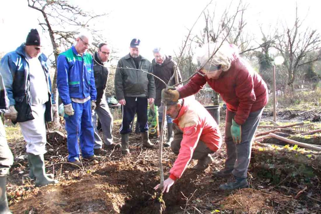 Au préalable, un travail conséquent de nettoyage d’une parcelle commune de 1000m2, en friche depuis plus de 30 ans…. a du être réalisé. La vocation de ce verger et d’une pépinière attenante est pédagogique, tant aux niveau des jardiniers de l’association que des animations qui y seront menées à destination des scolaires.