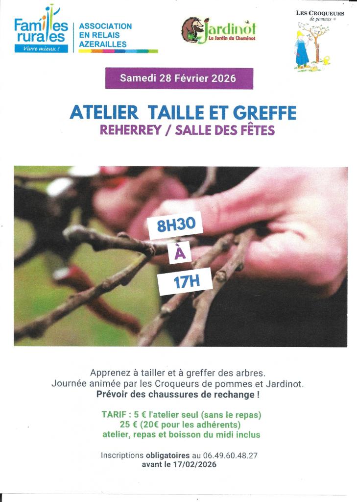 Les Croqueurs de Pommes de Lorraine (CPL) en partenariat avec RELAIS FAMILLE d’ AZERAILLES organisent une journée de démonstration de taille et de greffage le 28 février 2026 de 8h30 à 17h à la salle des fêtes de REHERREY